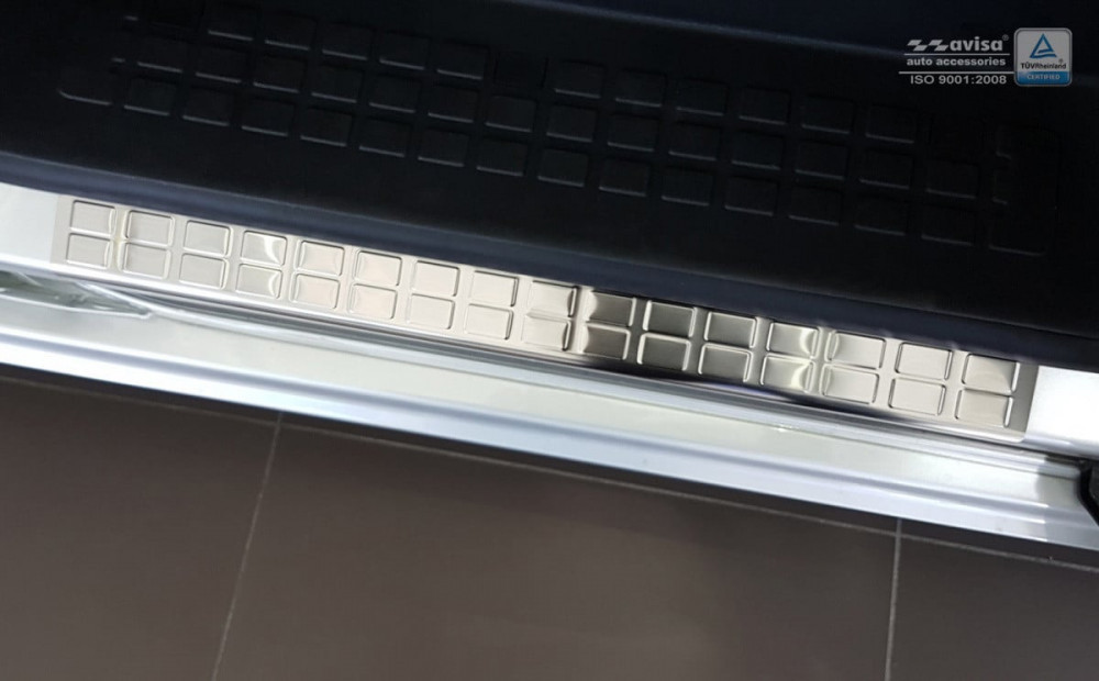 Rozsdamentes acél öntapadós küszöbvédő. A készlet 2 darabot tartalmaz.