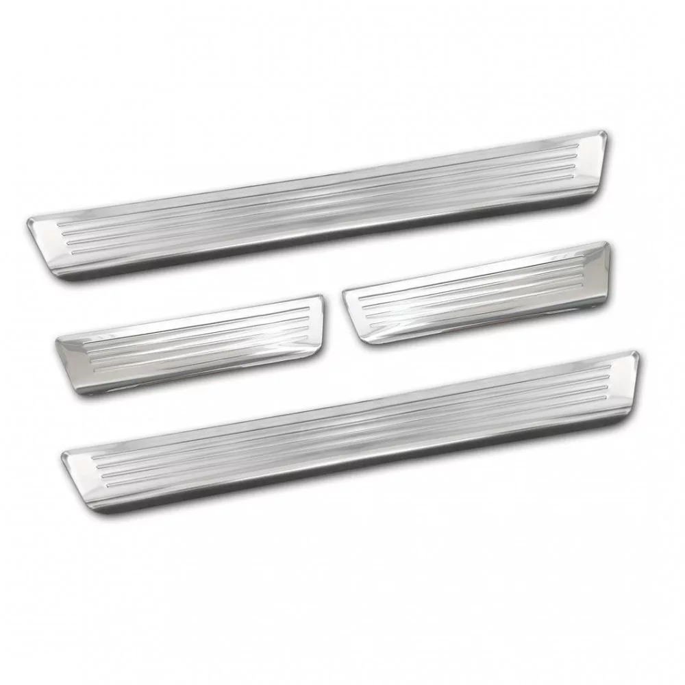 Rozsdamentes acél öntapadós küszöbvédő. A készlet 4 darabot tartalmaz.
