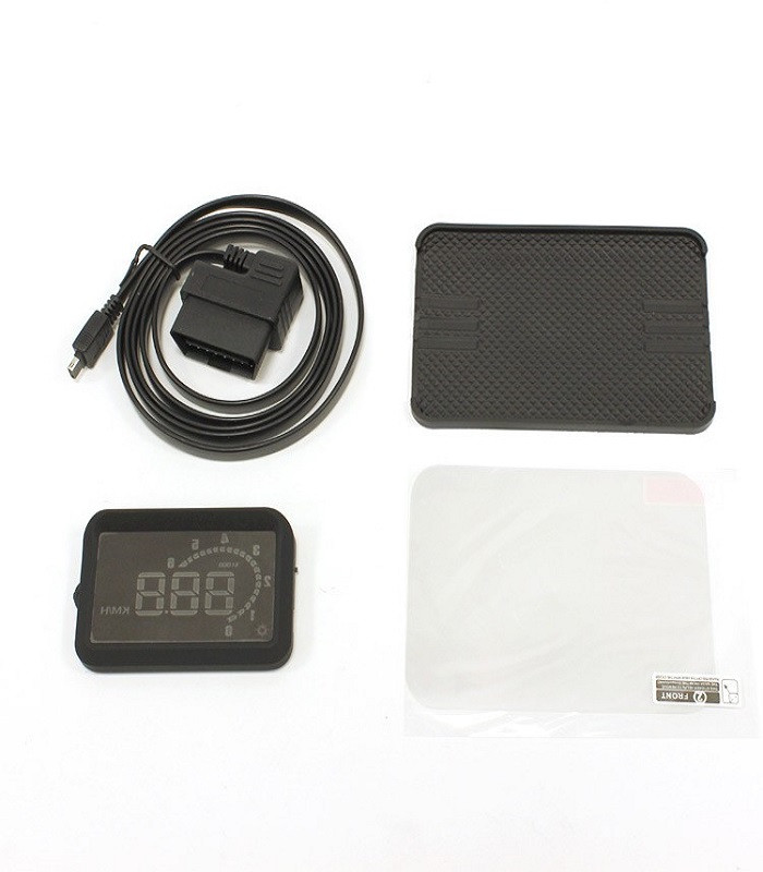 A HUD01 az OBDII interfész alapján lett kifejlesztve. Úgy tervezték, hogy a legújabb, stabil teljesítményű integrált áramkört alkalmazza. A telepítési és beállítás 3 percen belül könnyen elvégezhető. A HUD kijelző a műszerfalon helyezkedik el és a csúszásmentes gumi talppal vagy 3M kétoldalas ragasztóval (nem tartozék) rögzíthető. Fényvisszaverő fólia nélküli telepítés esetén, javasolt, hogy a HUD-t a szélvédőhöz minél közelebb helyezze el, ezáltal csökkentve a megjelenő számjegy árnyékát. A szélvédőn megjelenő árnyék teljes eltüntetéséhez ragasszuk a fényvisszaverő fóliát a szélvédőre belülről. A HUD kijelzőt az OBDII aljzathoz kábellel csatlakoztathatja.