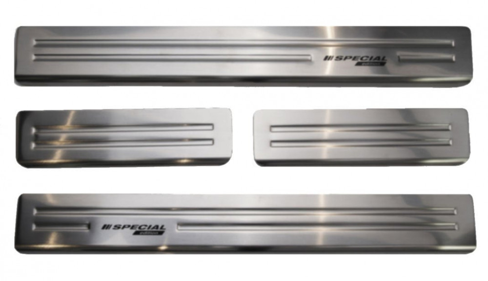 Rozsdamentes acél öntapadós küszöbvédő. A készlet 4 darabot tartalmaz.