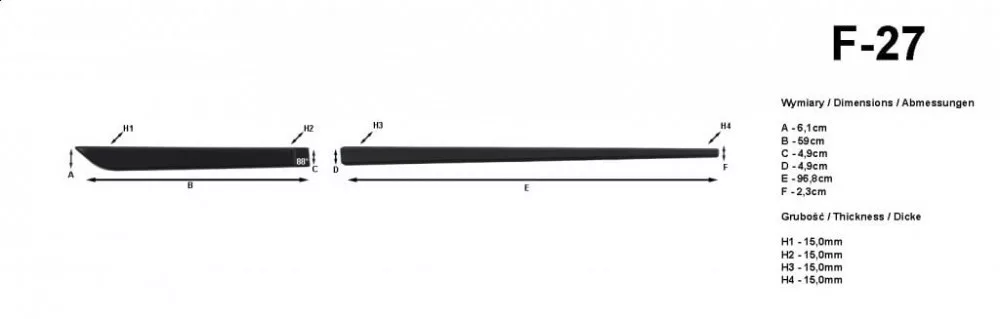 A fotók illusztrációk. Az ajtóvédő díszlécek az Ön autójának megfelelő méretekkel rendelkeznek!