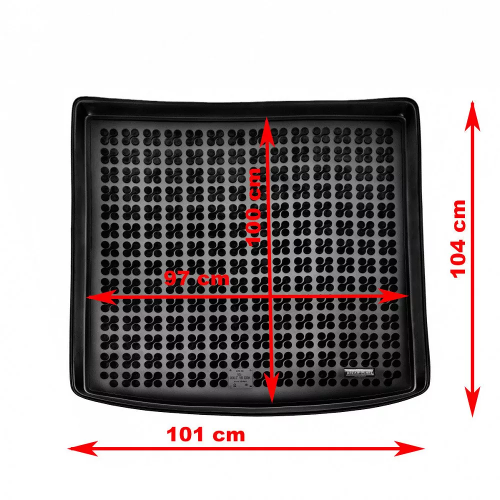 A perem magassága 3-4 cm. A csomagtértálca felülete durva, csúszásgátló textúrával rendelkezik