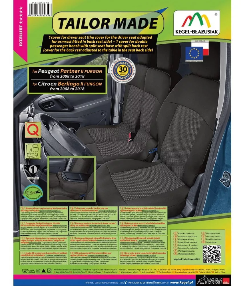 Citroen Berlingo 2008-2018 (első, 3 személyes) Kegel-Blazusiak méretpontos üléshuzat - egyedi üléshuzat