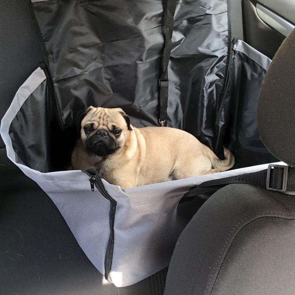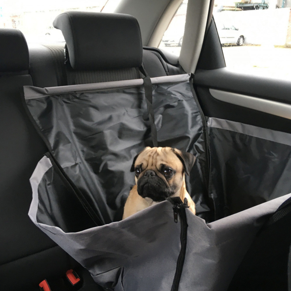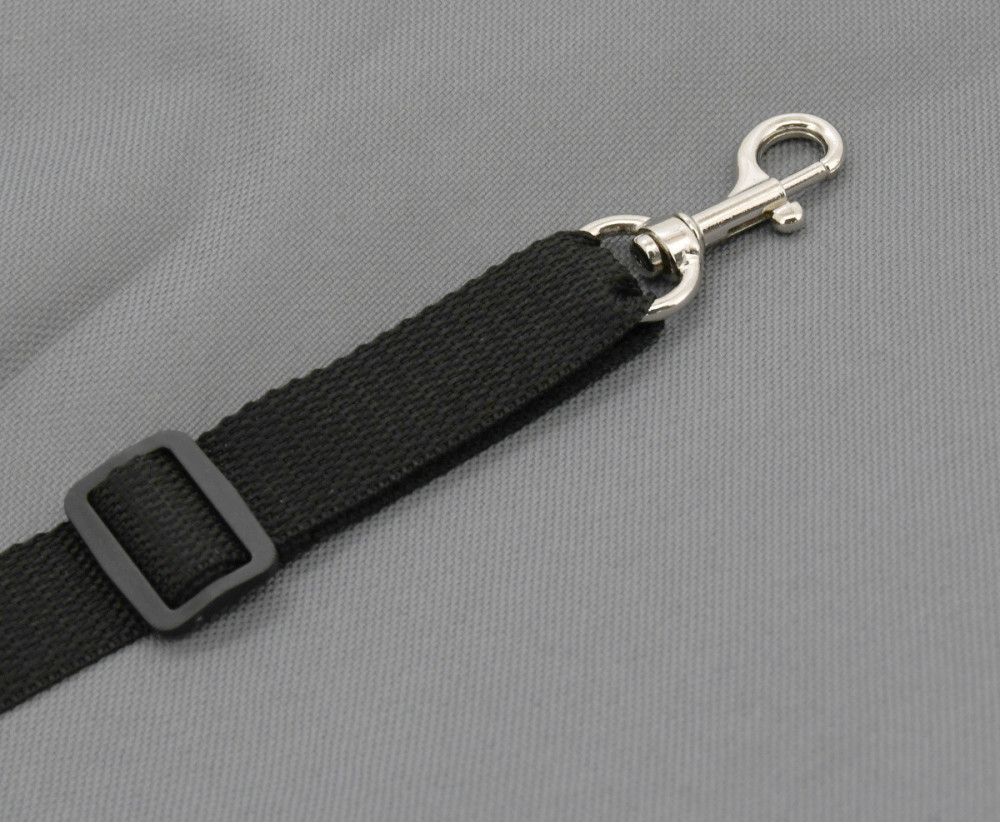 A huzat oldalsó cipzárral van ellátva a kutya könnyű be- és kiszállása érdekében. A huzat tartalmaz egy pántot is karabinerrel a nyakörv rögzítéséhez.