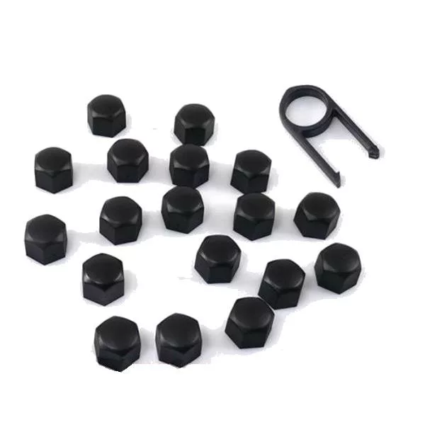 Díszkupak kerékanyára, fekete, 19mm átmérőjű, 20+1 db-os készlet + eltávolító eszköz