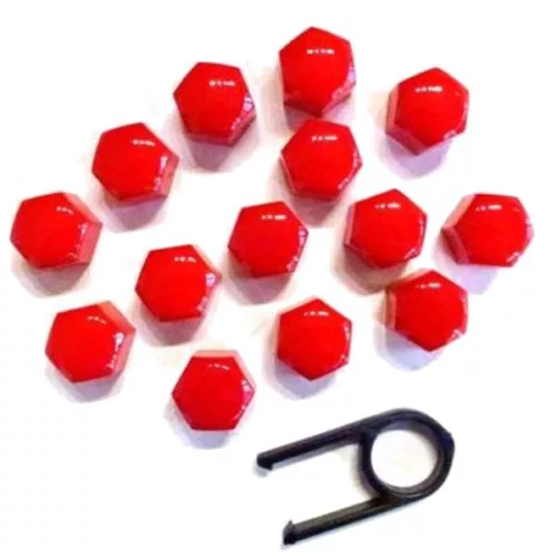 Díszkupak kerékanyára, piros, 17mm átmérőjű, 20+1 db-os készlet + eltávolító eszköz