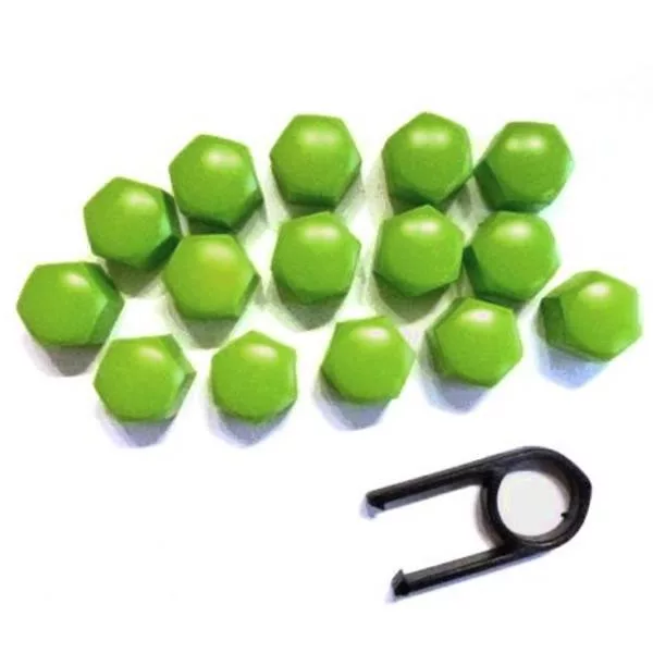 Díszkupak kerékanyára, zöld, 19mm átmérőjű, 20+1 db-os készlet + eltávolító eszköz