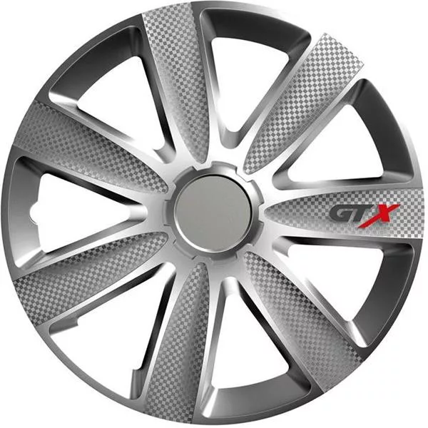 15 colos GTX Carbon Silver dísztárcsa 4 kerékre, teljes készlet. Alkalmas minden forgalomban lévő 15 colos acél felnire. Egyszerű felszerelés szerszám nélkül. Rendkívül ellenáll az időjárási körülményeknek, a szennyeződéseknek és az út sóinak. Ütésálló műanyag Könnyen tisztítható Műszaki adatok: Szín: Fekete/Ezüst Méret: 15col Anyaga: ABS műanyag Csomag tartalma: 4 db dísztárcsa, 15colos méretben (teljes készlet!)