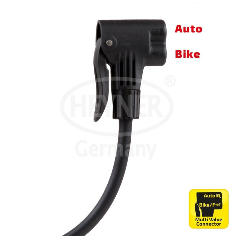 A 65 cm hosszú tömlő többfunkciós véggel van ellátva, amely alkalmas autó- és kerékpárszelepekre egyaránt. Ezért nem szükséges a hegyet vagy a csövet cserélni.