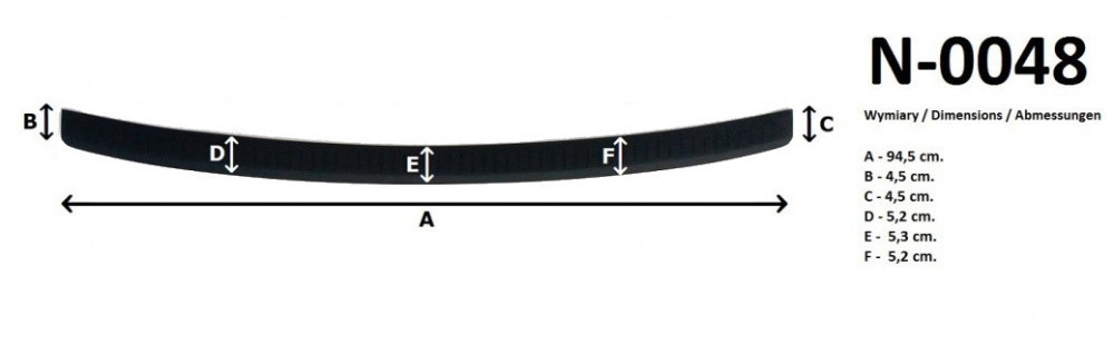 A lökhárítóvédő hatékonyan megakadályozza a festék sérülését a csomagtérbe történő pakolás és onnan való kipakolás során. A lemez modern műanyag-fröccsöntési technológiával készült, és nem tartalmaz fém alkatrészeket, amelyek korróziót okozhatnának a csomagtér karosszériáján.