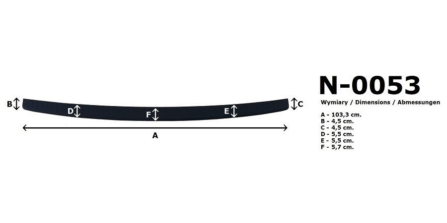 A lökhárítóvédő hatékonyan megakadályozza a festék sérülését a csomagtérbe történő pakolás és onnan való kipakolás során. A lemez modern műanyag-fröccsöntési technológiával készült, és nem tartalmaz fém alkatrészeket, amelyek korróziót okozhatnának a csomagtér karosszériáján.