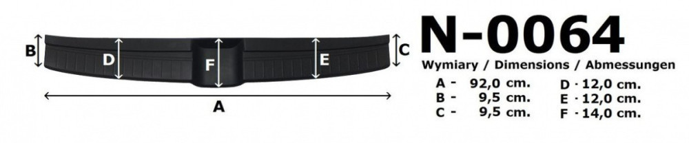 A lökhárítóvédő hatékonyan megakadályozza a festék sérülését a csomagtérbe történő pakolás és onnan való kipakolás során. A lemez modern műanyag-fröccsöntési technológiával készült, és nem tartalmaz fém alkatrészeket, amelyek korróziót okozhatnának a csomagtér karosszériáján.