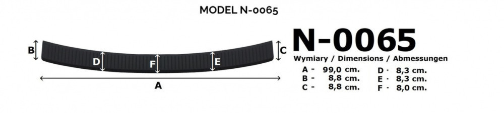 A lökhárítóvédő hatékonyan megakadályozza a festék sérülését a csomagtérbe történő pakolás és onnan való kipakolás során. A lemez modern műanyag-fröccsöntési technológiával készült, és nem tartalmaz fém alkatrészeket, amelyek korróziót okozhatnának a csomagtér karosszériáján.