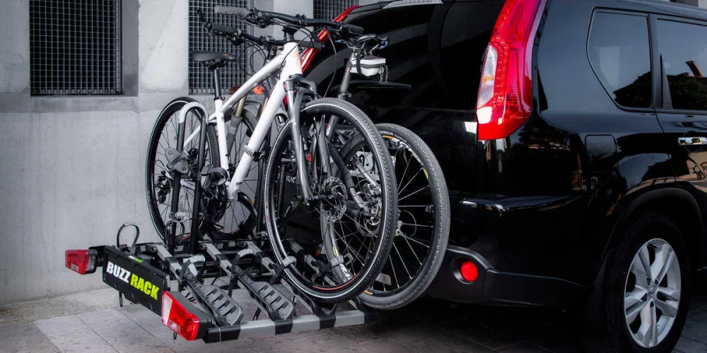 A Buzz Rack Eazzy4 vonóhorogra szerelhető kerékpártartó, 4 db kerékpár biztonságos szállítására alkalmas