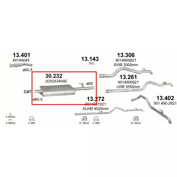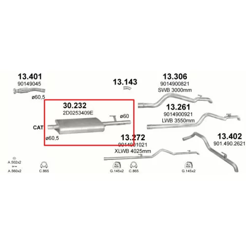 Bosal: 279-347, Walker: 22021, Ferroz: 06.105, , MERCEDES SPRINTER 2.9 D /1995 - 4/2000 2874ccm, 75kW 102 310D Turbo Diesel, MERCEDES SPRINTER 2.9 D /1995 - 4/2000 2874ccm, 90kW 122 312D Turbo Diesel, MERCEDES SPRINTER 2.9 D /1997 - 4/2000 2874ccm, 75kW 102 210D Turbo Diesel, MERCEDES SPRINTER 2.9 D /1995 - 4/2000 2874ccm, 90kW 122 212D Turbo Diesel, MERCEDES SPRINTER 2.9 D /1996 - 4/2000 2874ccm, 75kW 102 410D Turbo Diesel, MERCEDES SPRINTER 2.9 D /1995 - 4/2000 2874ccm, 90kW 122 412D Turbo Diesel, VOLKSWAGEN LT 2.5 D /1996 - 4/2001 2461ccm, 55kW 75 2.5 SDi Diesel, VOLKSWAGEN LT 2.5 D /1996 - 8/2006 2461ccm, 61-70-80kW 83-95-109 2.5 TDi Turbo Diesel, VOLKSWAGEN LT 2.5 D /1996 - 5/2001 2461ccm, 66-75kW 90-102 2.5 TDi Turbo Diesel, VOLKSWAGEN LT 2.8 D /1997 - 8/2006 2798ccm, 92-96-116kW 125-130-158 2.8 TDi Turbo Diesel, VOLKSWAGEN LT 2.5 D /1996 - 8/2006 2461ccm, 61-70-80kW 83-95-109 2.5 TDi Turbo Diesel, VOLKSWAGEN LT 2.5 D /1996 - 5/2001 2461ccm, 66-75kW 90-102 2.5 TDi Turbo Diesel, VOLKSWAGEN LT 2.8 D /1997 - 8/2006 2798ccm, 92-96-116kW 125-131-158 2.8 TDi Turbo Diesel