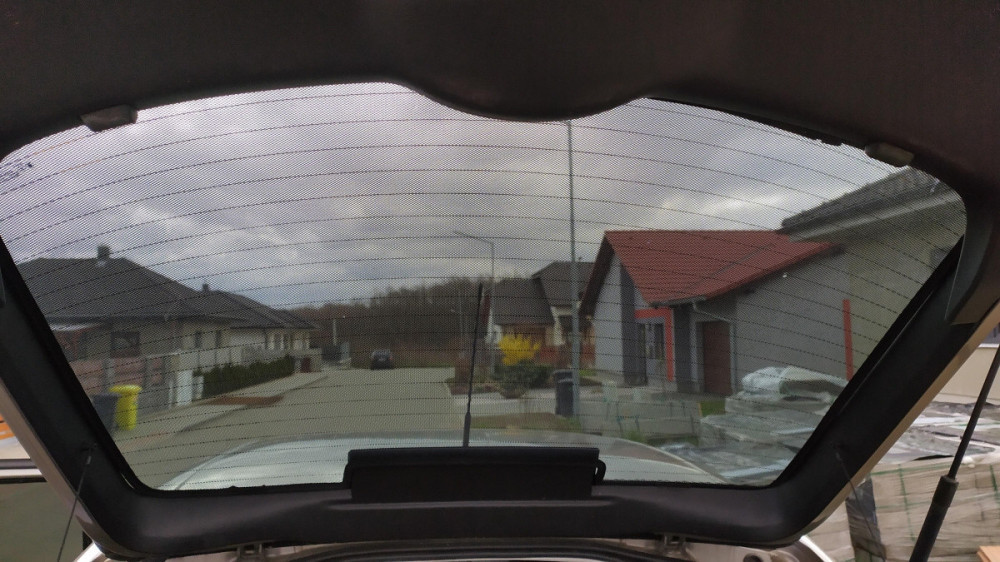 Anyag: A napellenzők töltete fekete, durva textília, nagyobb hálós szerkezettel (lásd fotógaléria), amely megbízhatóan védi az autó belsejét és az utasokat a napsugaraktól és a rovaroktól.