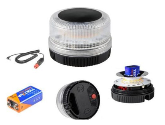 A tetővillogó működhet akkumulátorral vagy szivargyújtóról is, így különböző járművekhez alkalmazható, amelyek 12V vagy 24V feszültséget használnak.