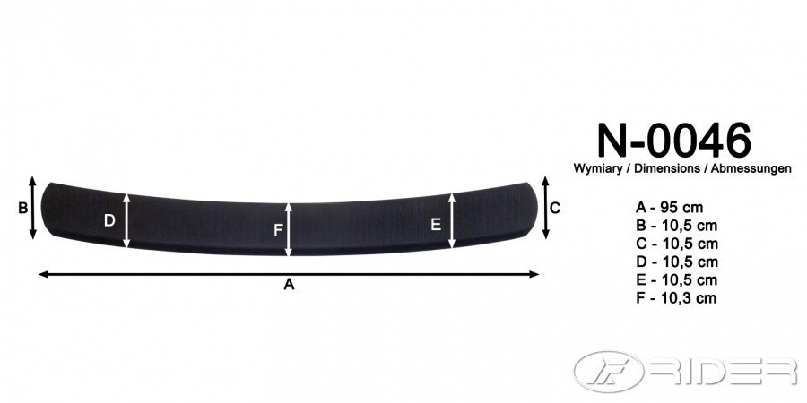 A lökhárítóvédő hatékonyan megakadályozza a festék sérülését a csomagtérbe történő pakolás és onnan való kipakolás során. A lemez modern műanyag-fröccsöntési technológiával készült, és nem tartalmaz fém alkatrészeket, amelyek korróziót okozhatnának a csomagtér karosszériáján.