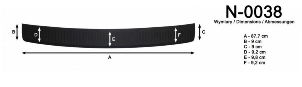 A lökhárítóvédő hatékonyan megakadályozza a festék sérülését a csomagtérbe történő pakolás és onnan való kipakolás során. A lemez modern műanyag-fröccsöntési technológiával készült, és nem tartalmaz fém alkatrészeket, amelyek korróziót okozhatnának a csomagtér karosszériáján.