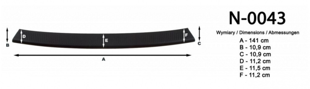 A lökhárítóvédő hatékonyan megakadályozza a festék sérülését a csomagtérbe történő pakolás és onnan való kipakolás során. A lemez modern műanyag-fröccsöntési technológiával készült, és nem tartalmaz fém alkatrészeket, amelyek korróziót okozhatnának a csomagtér karosszériáján.