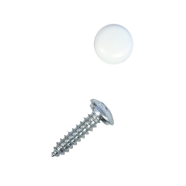 Csavar a rendszámtábla keretéhez műanyag fedéllel fehér színben.